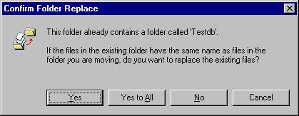 | A dialogue will appear telling you that there is already a 'testdb' directory present and asking whether you want to replace it. The correct response is YES. |